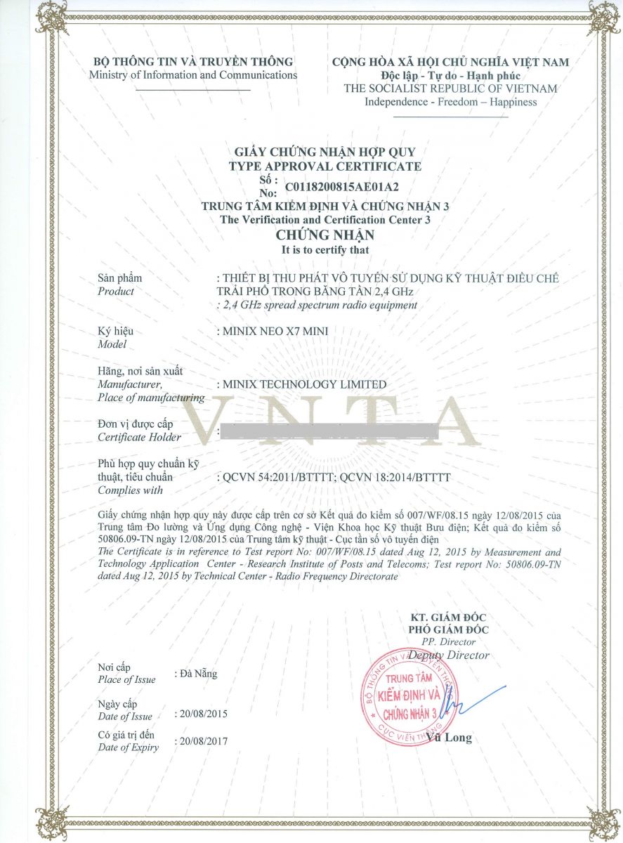 EXTENDMAX – Pursuant to regulations on list of radio, wireless, telecommunication devices and information technologies equipment (ITE) subjected to MIC Type Approval and Declaration of Conformity, Smart TV box device (Set-top-box) is subjected to MIC Vietnam Type Approval. Importer also has to proceed Product Quality Inspection Registration (PQIR) and Declaration of Conformity for customs clearance of each shipment.