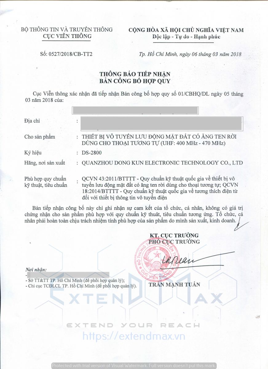 Preview of Vietnam MIC SDoC certificate for Walkie Talkie