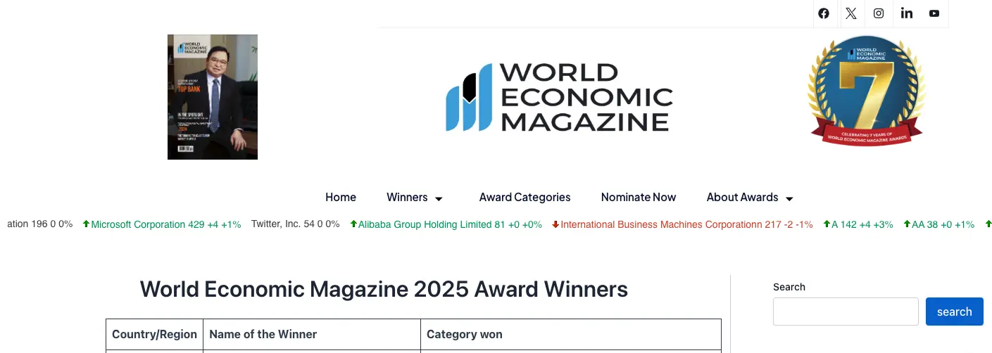 "The World Economic Magazine Inc. Awards celebrate the extraordinary achievements of global business leaders and organizations that exemplify innovation and exceptional leadership. These awards honor contributions across sectors such as finance, international trade, and sustainability, recognizing those who are actively shaping the future of the global economy."